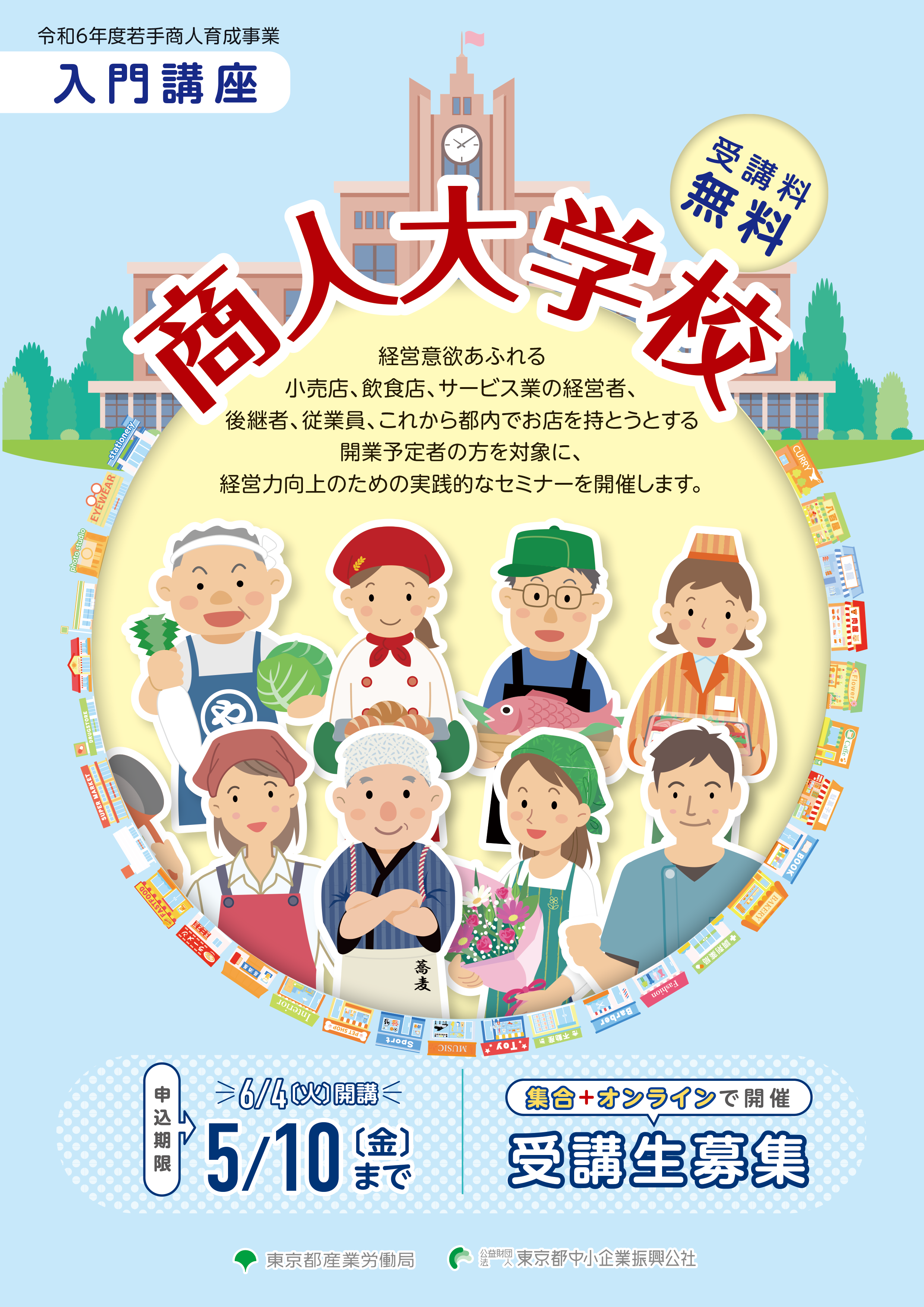 飲食店、小売・サービス業の方を対象とした経営力向上セミナー「商人大学校(入門講座)」の申込締切が5月10日(金)に迫っています。